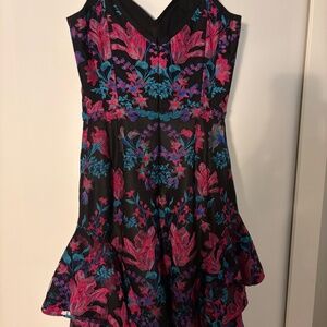 Embroidered dress, sits above the knee. Alterations done (taken in slightly at the bag).
