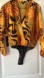 Bold animal print blouse/bodysuit. Features vibrant yellow and black swirls and animal print.