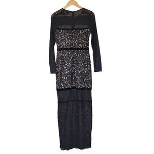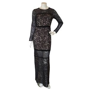 Elegant black lace maxi dress. Long sleeves. Perfect for evening wear.