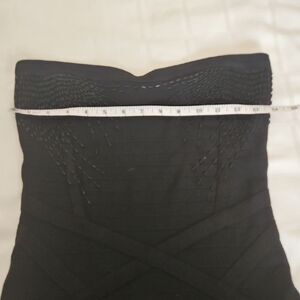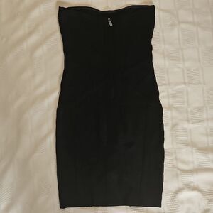 This stunning black dress by Marciano features a strapless design with a sweetheart neckline, perfect for a cocktail night out. Its bodycon silhouette hugs the figure, offering a sleek and sophisticated look. The dress's minimalist design ensures it remains a timeless piece in any wardrobe.