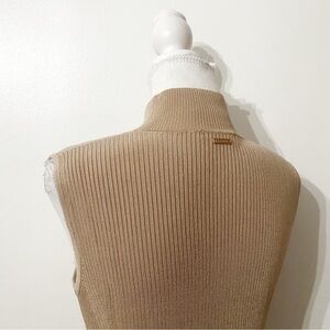 Marciano CAMEL TAN RIBBED STRETCH MOCK NECK SLEEVELESS BODYCON DRESS