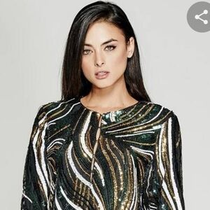 Marciano Dress Long Sleeve Sequined Mini XS