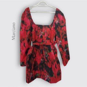 #Marciano #Guess #floral #satin #puff sleeve #vintage style #red #pink #black #green #rhapsody #guessbymarciano #sweetheart #belted #belt #nwt