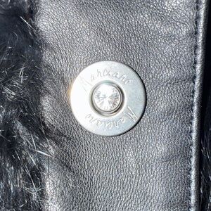 Chic 100% REAL rabbit fur vest with 100% real lamb leather trimming. Sleek polyester & acrylic lining on the interior. Snap-on Button closure with diamonds.