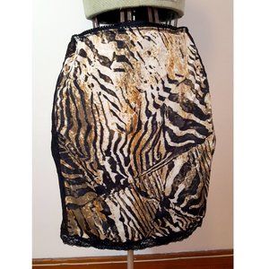 Marciano Tiger Zebra Animal Print skirt with lace trim on sides, size small