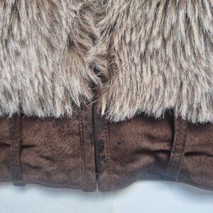 Includes front zipper, a pocket on each side and an inner pocket with a zipper on the left side.