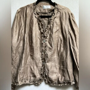 Marcona linen ruffled long sleeve lightweight jacket Sz 14