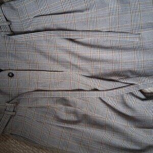 Like new. Viscose poly blend. Inseam 28 inches. Waist is 17 inches lying flat with tie belt. Middle weight fabric.
