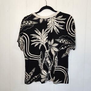 Marfinno Black Floral Leaf Print Knit Top Quiet Luxury Tropical Capsule Office