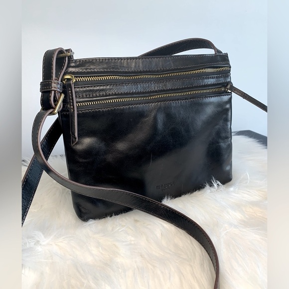 Sleek and stylish black leather crossbody bag, perfect for any occasion.