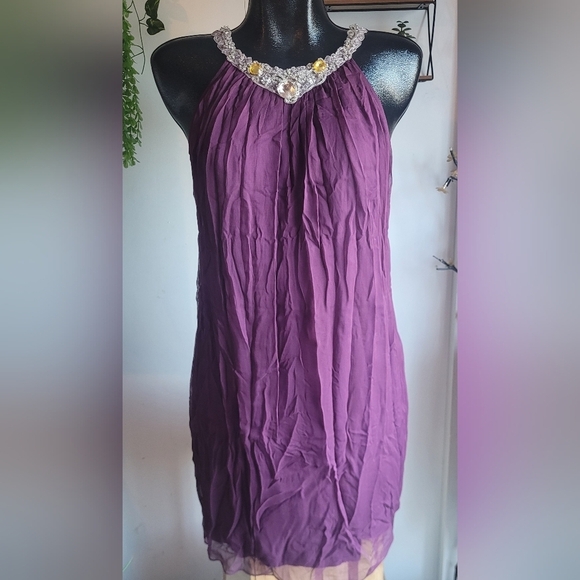 Maria Bianca Nero plum halter dress sequin/bead detailing around neckline