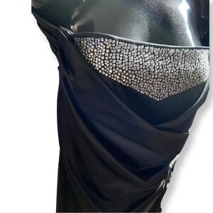 Maria Bonita Black Celebrity Dress Style Strap Shoulder Rhinestones bust detailing Bodycon Pencil dress L