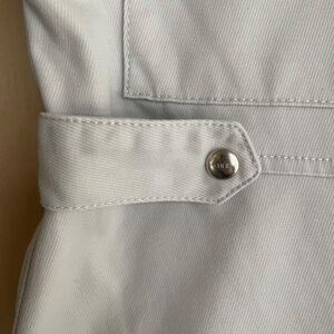 The color is very light grey/ bone. Similar style to racing jumpsuits with nice details including epaulets, waist snaps, flat pockets and sturdy zips. Large pockets. The sizing is Argentinian size 02 as can be seen from the tags. They say this is a European size 40.