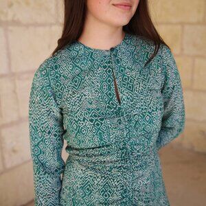 Maria Cher "Moldes Bell" Short Dress in "Emerald Shibory", size Large. Fits slim to size by North American standards. I'd say this is like an 8/10.