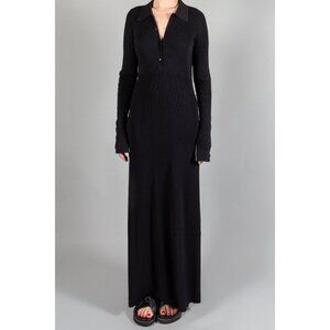 Maria McManus Ribbed Knit Maxi Dress w Collar in Black, size Small