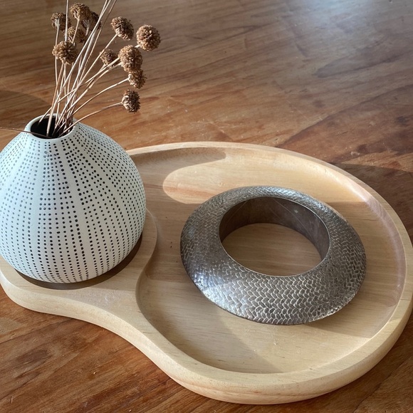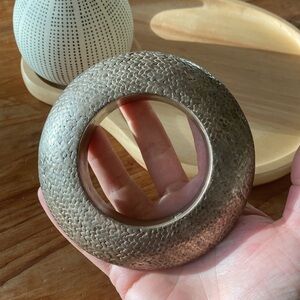 Modern, chunky, neutral colored “woven” bangle bracelet. This has been previously worn by me many times. I loved this back in my office attire days and always got asked about it. It’s made by a beautiful designer in Bs As. The kind of store where you love everything in it! 😍