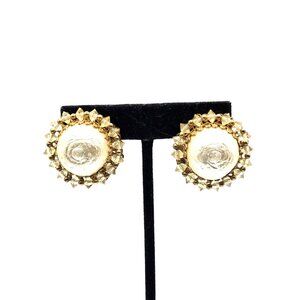 Mariam Haskell Signed Vintage Crystal and Gold toned Faux Pearl Clip earrings