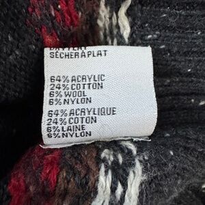 Stay cozy and stylish this season with this beautiful Fair Isle turtleneck sweater! This sweater features a classic Nordic-inspired design with intricate snowflake and geometric patterns across the chest and sleeves. The base is a versatile charcoal grey -blue (with a subtle "donegal" speckled texture), accented by festive red, cream, and chocolate brown tones - Excellent pre-owned condition.