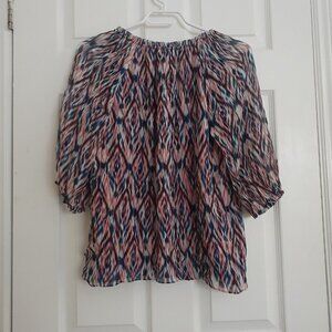 Marie Oliver Women's Size S Multicolor Southwest Print Silk Blend Crepe Blouse
