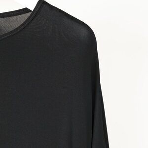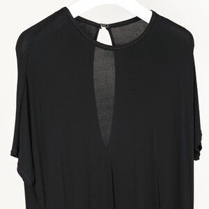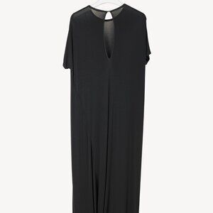 This maxi dress from Marie Saint Pierre is crafted in a slinky black crepe jersey, and features short dolman sleeves, a crew neckline, a back keyhole with a hook closure, a loose silhouette throughout the body, and a bubble-hem.