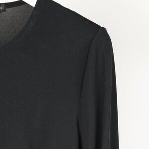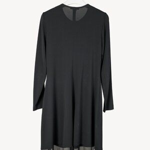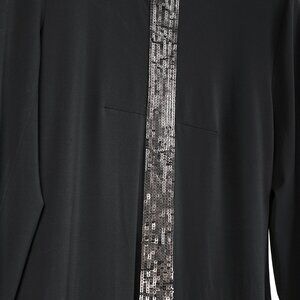 This dress from Marie Saint Pierre is crafted in a drapey black crepe jersey, and is adorned with tonal sequins down the center front. It features long sleeves, a crew neckline, an A-line midi skirt, and a layered tonal mesh hem.