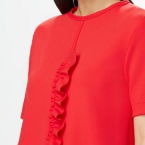 Short sleeves, Ruffle on front panel, Invisible back zipper