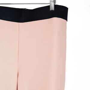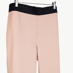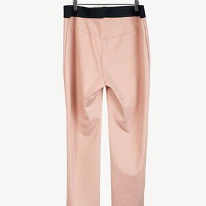 These pants from Marie Saint Pierre are crafted in a peach neoprene, and feature a high rise, a black elastic waistband, and straight-cut legs.