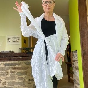 Marie Saint-Pierre designer. White versatile coverall. Light crumpled fabric. S