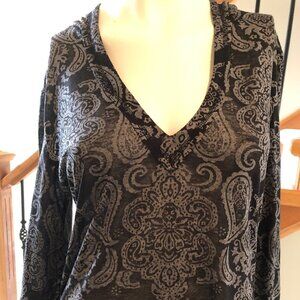 Marika Balance Collection Hooded Paisley Print VNeck CoverUp Tunic Top Blk+Gry M