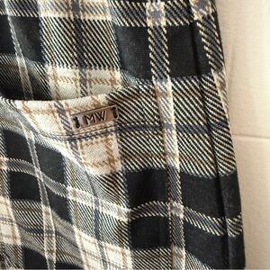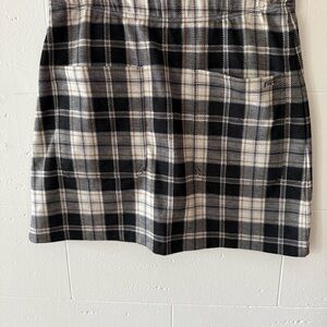 Cute meets cozy in this soft plaid mini skirt from Marilou Wolf. Designed in a brushed, comfortable fabric with a classic plaid pattern, to font pockets and an elastic waist for easy wear. Perfect with tights and boots for fall, or a tee and sneakers in warmer weather.In excellent pre-owned condition.