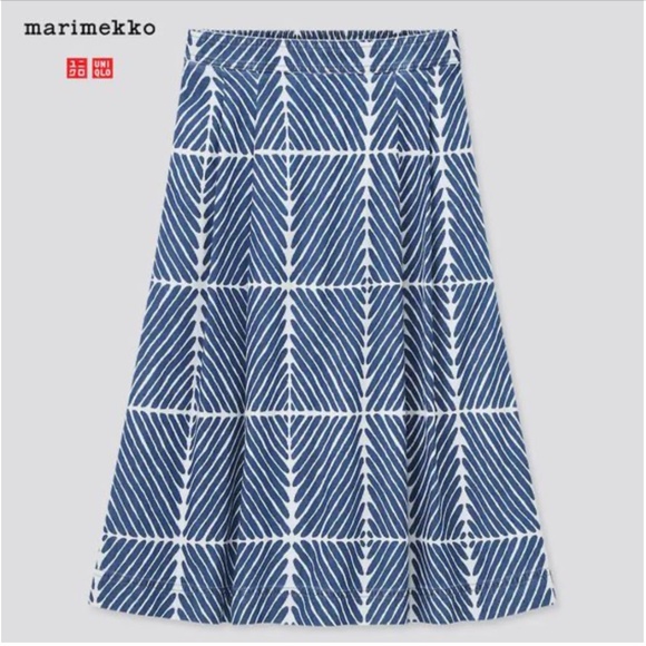 Marimekko and Uniqlo collab light blue and white denim A line midi skirt new with tags. 100% cotton, side pockets, unlined, elasticated wide band at the back, A-line style. From the limited edition collaboration from a couple of years ago, discontinued and hard to find. Marked size M. All measurements are approximate and taken with the garment laying flat: Waist 14.5’’ (it stretches up to 18''-19'') Total length 26’’ This item comes from a smoke free, pets friendly home. Recycled bags/box used when possible. Please, let me know if you'd like any additional info. Thanks for looking!