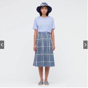 Marimekko and Uniqlo collab light blue and white denim A line midi skirt NWT