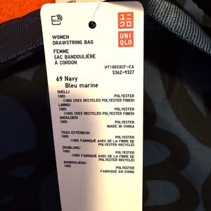 Marimekko and Uniqlo collab navy blue floral drawstring bag new with tags. Lightweight and durable, adjustable shoulder strap, drawstring closure, spacious interior and versatile, limited edition and rare to find. Colour is accurate in the stock photos, mine are taken in artificial light. Marked size One size, please see pictures for measurements. This item comes from a smoke free, pets friendly home. Recycled bags/box used when possible. Please, let me know if you'd like any additional info. Thanks for watching!