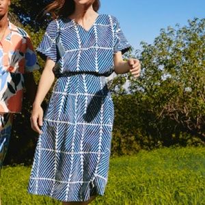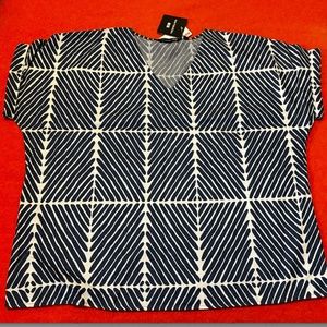Marimekko and Uniqlo dark blue and white denim V-neck short sleeve blouse NWT