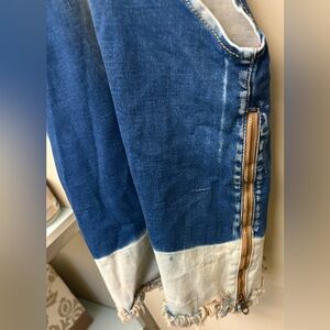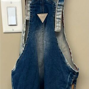 Marin kiog distressed denim jeans overalls mini dress women's size XS