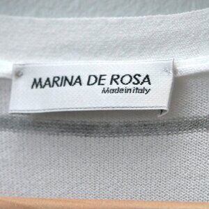 The Marina De Rosa Italy Striped Mini Dress Tunic in White/Silver Grey is the epitome of chic summer style. This lightweight pullover style dress features cap sleeves and a flattering v-neckline, making it a versatile piece for any occasion. Crafted in Italy, the dress exudes quality and elegance with its timeless striped pattern and breezy silhouette. Whether you're strolling along the beach or attending a soirée, this dress is sure to make a statement.