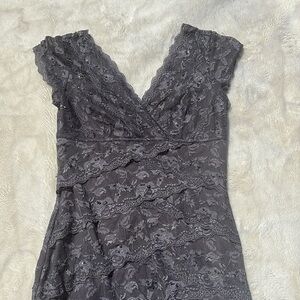 Marina Grey Lace Midi Dress | Elegant Cocktail & Wedding Guest Style Size 4