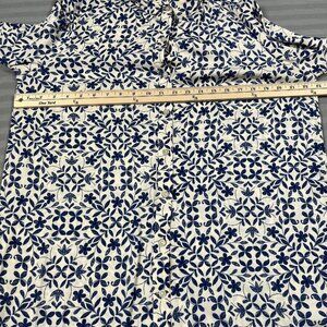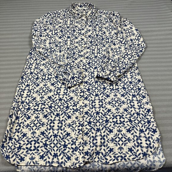 Marina Kaneva Shirt Dress Womens UK 16 White Blue Floral Button Long Sleeve
