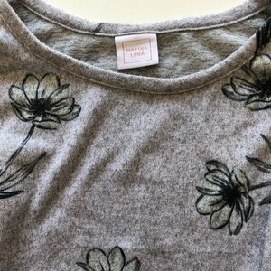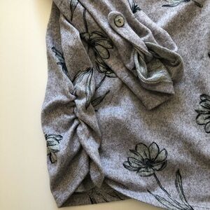 Cosy sweater three-quarter length sleeve size extra-large, like new, button up or button down arms, sides of top have cinched elastic. No material tag but feel it is a polyester cotton blend. Sweater is extremely comfortable, so soft...scoop neck. Condition is like new.
