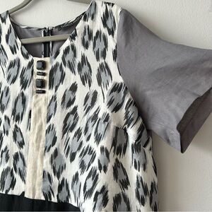 Marina Rinaldi Dumas Linen Leopard Print Short Sleeve Shift Dress
