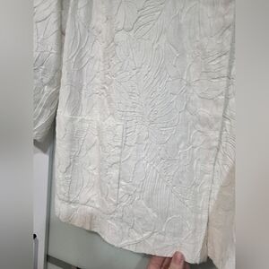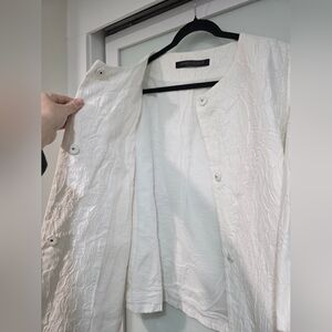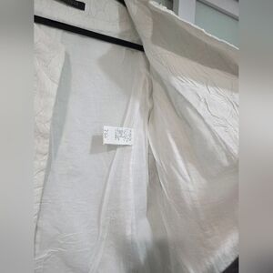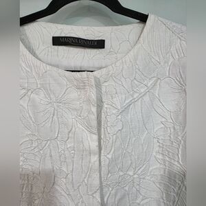 The pictures don't do justice to this beautiful piece. A white blazer from the designer Marina Rinaldi. Excellent pre-owned condition. worn twice. No flaws or stains. 77% cotton blazer. Fully lined in 100% cotton.