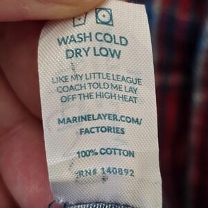 Marine Layer Shirt Mens XL Red Blue Plaid Flannel Long Sleeve Button Up