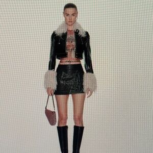 Beautiful Embossed leather with fluff lapels and cuffs (synthetic material) that can be removed so jacket can be worn in all seasons. Bought from Farfetch, imported from France. Worn only three times, no damage or scuffs on leather. Size is 36, fits like a small or xs. Included in photos is website of FWRD that carried these jackets for $1212.58cad but now out of stock on all websites.