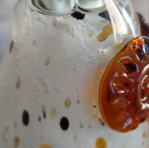 vintage blow glass spotted owl. this unique peice is in stunning condition. no chips breaks crakes. weights 2lbs & 5inces in height. his beautiful amber eyes & beak. can be used as a weighted paper holder or just display with you collection. Will be loving & carefully packed for tje trip 2 his new home.