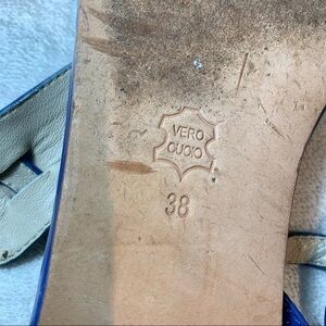 In Excellent condition, beautiful Italian made shiny blue tongs, upper insole leather and sole, comfy foam on the insole. Normal wears on the soles, tiny