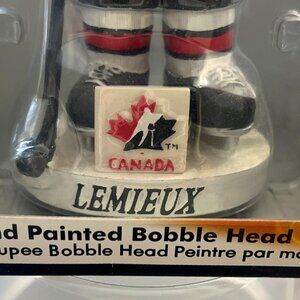 Celebrate your love for hockey with this officially licensed Hand Painted Mario Lemieux bobblehead from the Animation In Motion Collectible Series! This original vintage piece features the legendary player in his Team Olympic Canada uniform, making it a must-have for any sports memorabilia collector. With its high level of detail and craftsmanship, this bobblehead captures the essence of Lemieux's iconic style on the ice. Whether you're a die-hard fan of Team Canada or simply a lover of vintage sports memorabilia, this collectible is sure to be a prized addition to your collection. Don't miss your chance to own this unique piece of hockey history!
