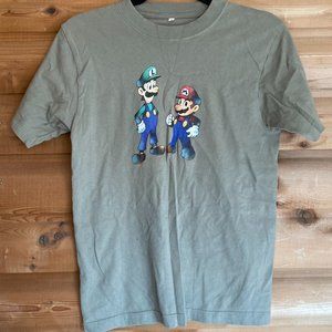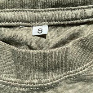 Spectacular olive green, classic tee. This piece has a wonderful vintage look to it. The screen print is cracking and slightly peeling to give it a wonderful classic & retro look.