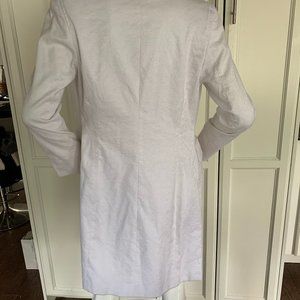 Mario Serrani 2 shimmering white paisley 3/4 jacket. The detail on this jacket is exceptional fully lined never worn. The white shimmers as there is a subtle metallic thread woven throughout the pattern. This jacket can be worn over dresses with jeans with dress pants etc etc