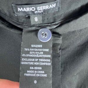 Mario Serrani Italy Black Stretch Pants. 74% rayon and 4% spandex. Women's size 8. Zipper fly with button closure. Very good pre-loved condition. No visible flaws. Extra button attached.
