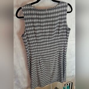 This chic sleeveless dress from featured artist Mario Serrani features a classic black and white pattern, perfect for any occasion. Its timeless design ensures you look stylish and sophisticated. Worn once.